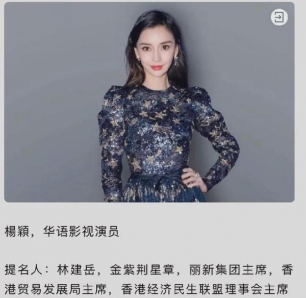 杨颖在香港还有一个明晃晃的身份--香港十大杰出青年。