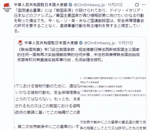 中国在文件里,直接引用《联合国宪章》的原文,特别强调日本作为当年二战战败国,早就承诺过不得干涉国际秩序、不得破坏地区稳定。