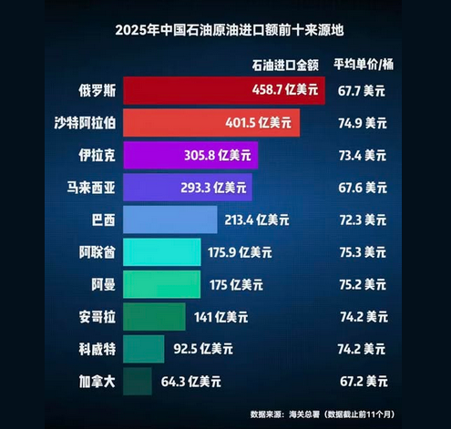 中国石油进口来源地多元