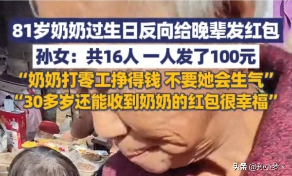 10月22日,河北邯郸。81岁奶奶过生日反向给晚辈发红包,孙女:"共16人每人发了100元。都是奶奶打零工挣得钱,不要她会生气,30多岁还能收到奶奶的红包。