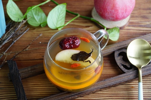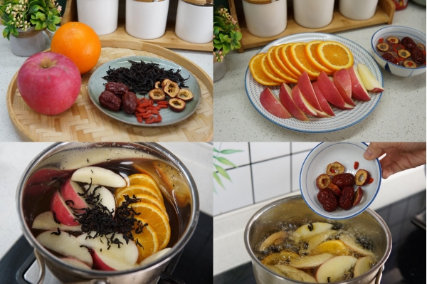 所需食材:橙子、苹果、山楂干、红茶、红枣、枸杞、冰糖