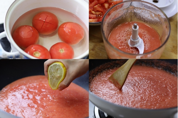 番茄除了生吃和常见做法外,也可以自己在家做成番茄罐头或是番茄酱慢慢吃,平时做菜、做披萨、配面包等都可以。