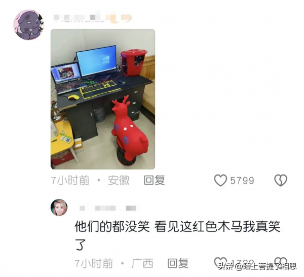 坐着木马玩电脑,果然,在妈妈眼里,你始终是那个可爱的小男宝宝~