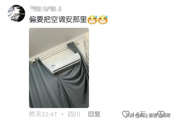 所以,到底是空调占了窗帘的位置,还是窗帘占了空调的地方?看它俩,谁也不服谁的样子。