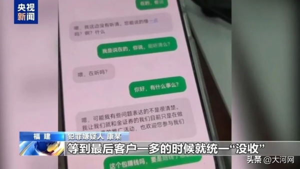 犯罪嫌疑人 康某:看到盘口金额不怎么大,我就提了几点建议给他们。采取一种拉群的方法,把所有加的客户全部拉到一个群里面,模式跟传销一样。包装、引流、拉群、下载App,等到最后客户一多的时候就统一"没收"。