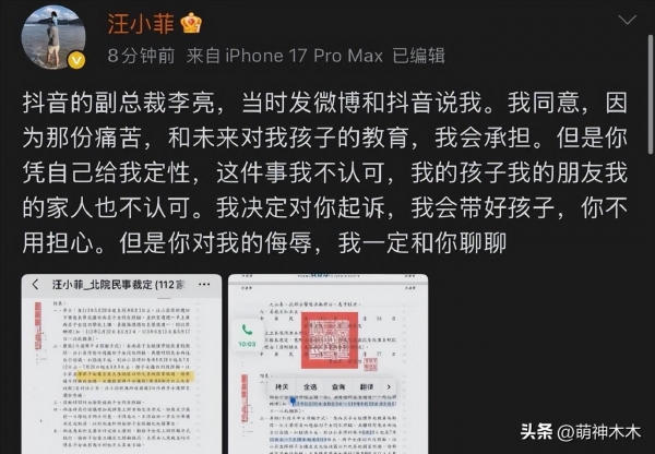 汪小菲喊话起诉抖音副总!晒出离婚裁定书,暴露大S隐私遭痛批