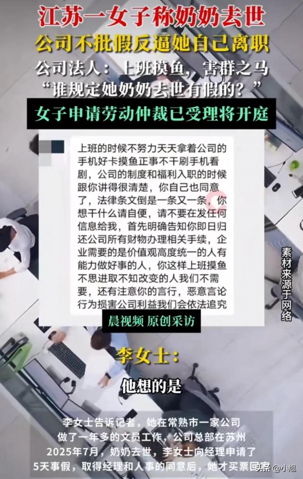 李女士全盘否认。她工作的分公司,没监控、没Wi-Fi、没打卡机。她说,摸鱼是借口,公司就想"零成本"赶人。