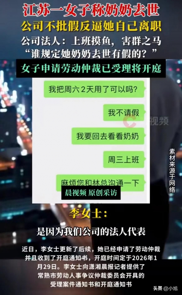 李女士已申请劳动仲裁。2026年1月29日开庭。