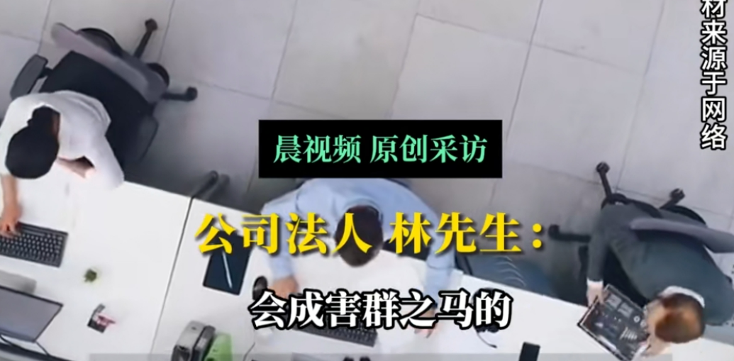 公司法人林先生后来对着记者镜头,给出理由:"上班摸鱼,害群之马。"