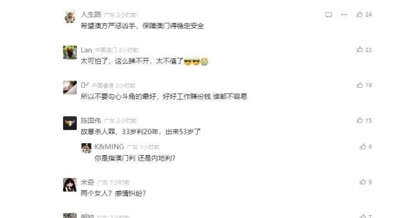 抵达澳门后,缪某并未急于与朋友相见,而是先办理了酒店入住。但她的"准备工作"并未停止。随后,她便奔赴澳门中区一家商场,买下了两把更为骇人的凶器:一把16厘米长的利刃,以及一把同样16厘米长的砍骨刀。光是刀具的尺寸和类型,就足以让人不寒而栗--这不是用来烹饪的工具,而是赤裸裸的杀戮武器。有网友看到此处,不禁心生寒意:"短刀、砍骨刀,还特意去买,这绝对是提前想好要杀人,太歹毒了!"