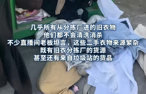 记者调查发现,大量来源不明、未经清洗消毒的二手衣物,甚至是从垃圾站回收的衣物,正通过各大直播平台,以"大牌尾货""孤品样衣"的名义流向消费者。