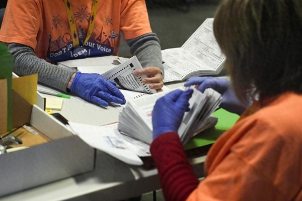 当地时间2024年11月2日,美国内华达州北拉斯维加斯,选举部门的工作人员在对选票进行分类 视觉中国