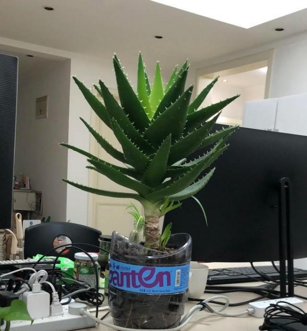 上海一位男生离家出差5个月,原本打算半个月就回来,只给芦荟套了个外盆、盆里留了一点水兜着。