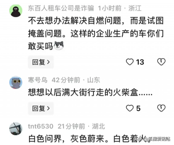 烧都烧完了,该看的都看见啦,再说,又不是只有电车会自燃,油车也会呀,何必这样呢,这次盖布,下次是不是就要扣标了呀?