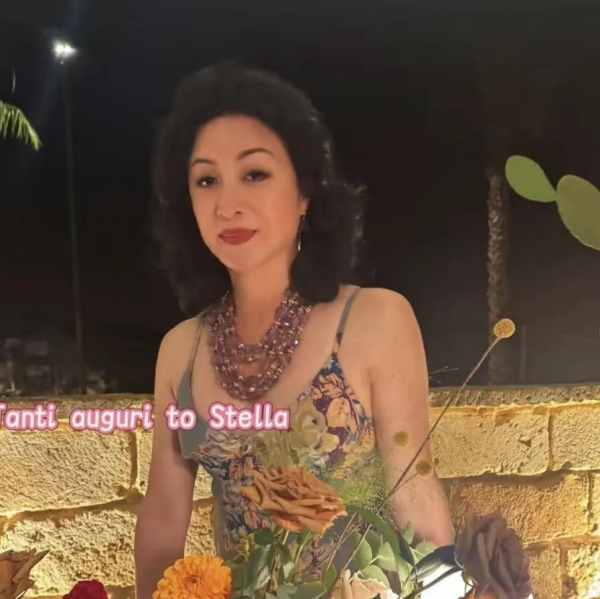 偶尔也会穿亮色。橘色连衣裙,领子小巧,正好露出脖子的轮廓。大帽子上花朵密布,在异国街头,分外醒目。