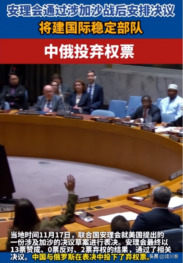 最近美国在联合国提的加沙两点和平计划,相信很多网友都关注到了,一共又13票赞成、2票弃权、0票反对,其中这两个弃权,是中国和俄罗斯。