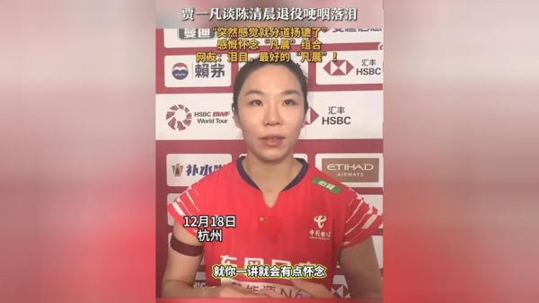 2025年12月18日,世界羽联年终总决赛的赛后采访区,刚刚与搭档张殊贤赢下比赛的贾一凡,在谈及老搭档陈清晨即将到来的退役仪式时,情绪突然失控。