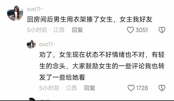 事件之后,据说女子被丈夫拖进房间殴打,甚至一度产生了轻生的念头,现如今网友扒出她的社交账号,最近一条留言是:"活着挺没有意思的。"