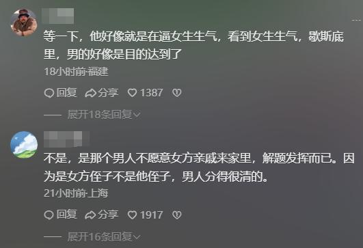 而女子如此激烈的反应,恰恰说明这样的场景早已不是第一次上演,积弊已久,原来这段婚姻的起点,从一开始就埋下了深深的隐患。