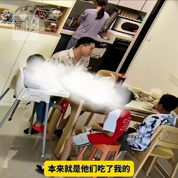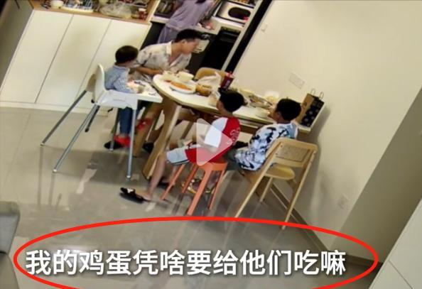 眼看属于自己的鸡蛋没有了,丈夫立刻化身"怨妇",一边抱着自己的小儿子,一边不依不饶地对着妻子一遍遍质问。