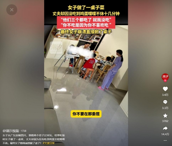 据了解,事发当天妻子精心准备了满满一大桌菜,等到一家人围坐在一起吃饭的时候,丈夫却慢悠悠地坐下目光扫过餐桌,随即眉头紧锁,问:"我的鸡蛋呢?"
