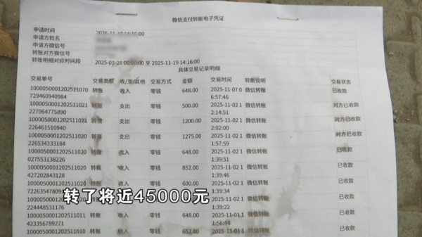 柯先生:我问她钱哪来的,把微信调出来,就全部查出来了。就是从他妈妈微信里面转账过来的,转了将近45000元。