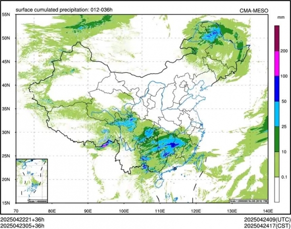 在近期频繁出现的降雨影响下,我国南方地区主要分为三大块进行降雨发展,西南、江南和华南等地。其中,部分区域将迎来大到暴雨,局部地区甚至可能出现大暴雨,同时伴有短时强降水、雷暴大风或冰雹等强对流天气。这些强降雨的主要集中时段预计在4月23日夜间至24日。