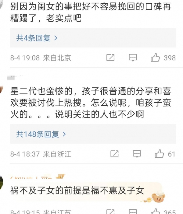 网友们看到黄奕的回应后,并不买账,都觉得黄奕就是故意试探网友们的反应,看到网友们反对才说女儿只是喜欢,这让网友们连带着对黄奕的影响也不好了。
