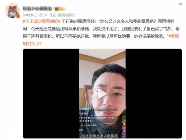 关于此事,于正目前还没正面回应,不过他在直播中倒是提及了对方:"怎么又这么多人和我刷露思啊?露思很好啊!"