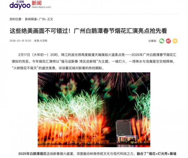 以广州白鹅潭为例,广州市政府门户网站早在2024年就发布了"白鹅潭春节烟花汇演"的相关信息。
