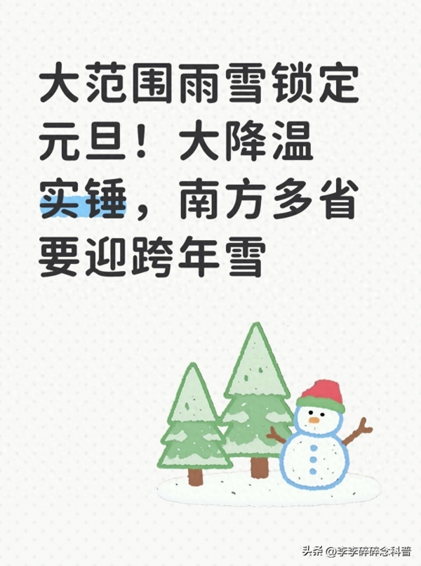 其实不管是降温还是雨雪,都是冬天正常的天气现象,虽然会给出行带来一些不便,但也能让我们感受到不一样的跨年氛围。对于北方朋友来说,大雪纷飞的元旦更有年味;对于南方朋友来说,能在新年第一天看到雪花,也是一种特别的惊喜。只要我们提前做好准备,就能安全、愉快地度过这个元旦假期。