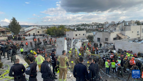 3月1日,救援人员在耶路撒冷西部城镇贝特谢梅什的导弹袭击现场工作。 图源:新华社