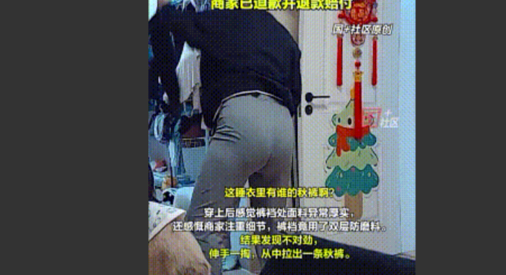 "袖子刚好,长度也合适,正美滋滋转圈圈呢,手一伸进口袋,摸到个毛茸茸的东西,还以为是商家送的小赠品。"结果掏出来一看,李女士当场愣住--那是一条灰扑扑的男士秋裤,裤脚还带着点起球的痕迹,明显是穿过的旧款!
