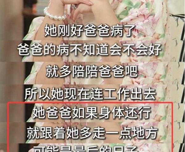 她不只是提到了郭碧婷,还提到了她父亲,说她父亲可能快到最后的日子,这话引起不少网友的警觉。