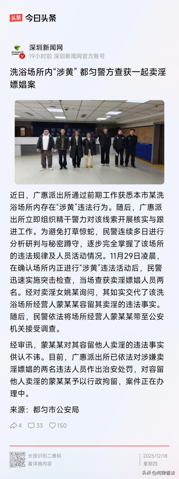 最后,法律面前没有模糊地带,正规经营者应守住底线,公民也需分清合法与违法的边界。你认为哪些场所最容易滋生涉黄行为?该如何加强监管?欢迎在评论区@何律普法留言讨论,一起为净化社会风气出谋划策!