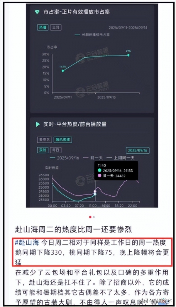 网友也表态,该剧制作粗糙,剧情漏洞百出,现在还出现了镜头穿帮,主演教育观众,把仅存的一些剧粉都赶走了,又没有新人入场,仅靠粉丝支撑很难撑住,暴跌是正常的。
