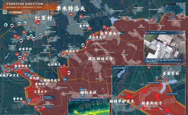 11月底,俄乌两军在红军城外围仍有交火。俄方调集炮兵支援,乌军加强无人机巡逻。街区一片废墟,电缆交错、瓦砾堆积。红军城的名字带着历史的讽刺感,如今成了现代战争的实验场。