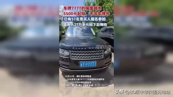 鲁YP7777路虎的拍卖事件在社交媒体上引发了广泛讨论。微博话题#车牌7777报废路虎拍出27万高价#吸引了大量网友关注。许多网友对报废车能拍出如此高价表示惊讶,也有人指出这反映了人们对"靓号"车牌的追捧。