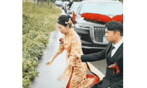 视频中,地面都是潮湿的,当天应该是下过雨,可能是天上的爸爸看到女儿出嫁落下欣慰的眼泪,新娘是一个好媳妇,出嫁了也不忘了告诉爸爸,新郎也磕的很认真,是个好老公。新郎的一举一动都是一个值得托付的好男人。