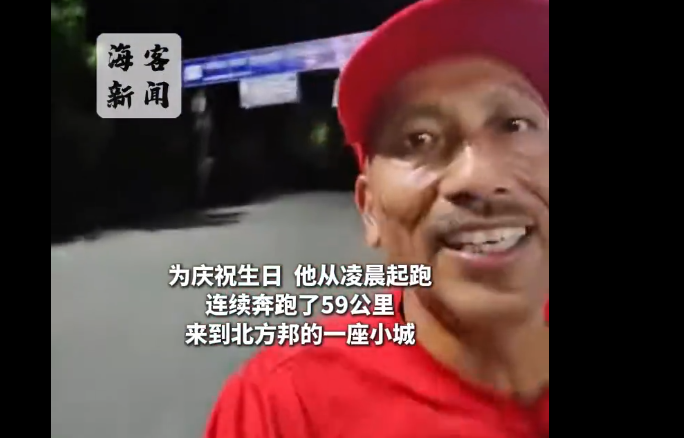 画面显示,这名男子身着红色上衣、头戴红帽,在夜间的道路上坚持奔跑。据悉,他以这种极具挑战性的方式,将年龄数字与奔跑里程巧妙结合,用汗水为59岁生日增添别样纪念意义。