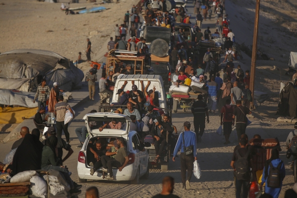 当地时间2025年10月10日,加沙地带,随着加沙地带停火协议生效,巴勒斯坦民众携带随身物品从加沙南部返回北部地区。