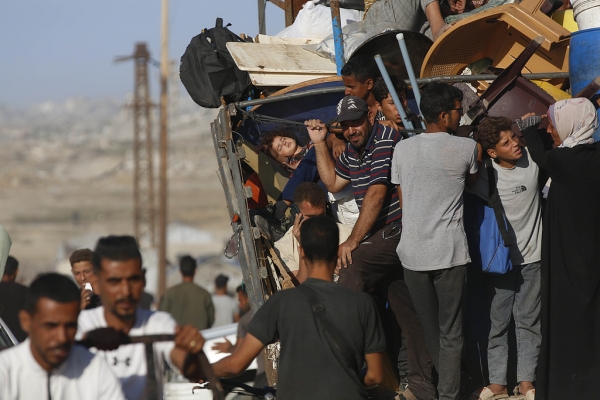 当地时间2025年10月10日,加沙地带,随着加沙地带停火协议生效,巴勒斯坦民众携带随身物品从加沙南部返回北部地区。