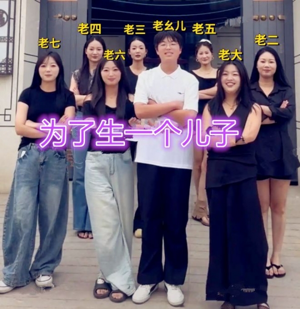 在视频中出现的,是女子的七个女儿,还有最小的儿子老九,虽然是儿子,但是在姐姐们的影响下,看着也没有什么阳刚之气!