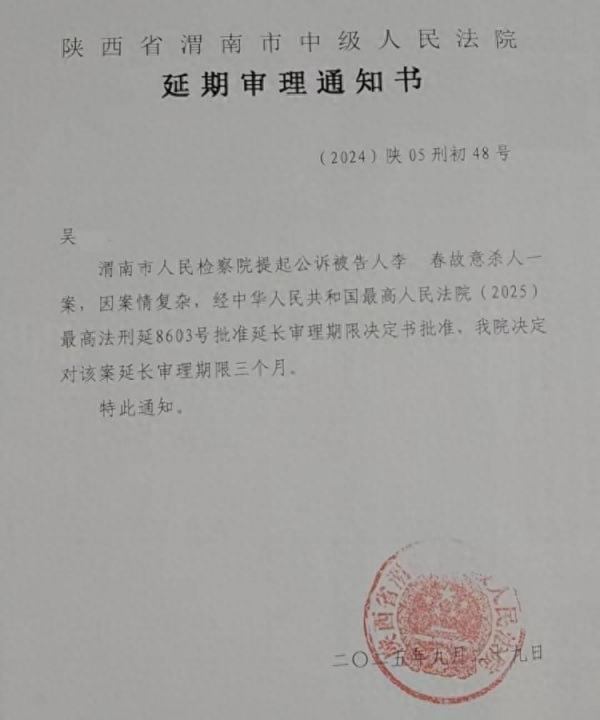10月2日,记者从陕西渭南白水县"男子灌面汤呛死妻子案"女方家属处获悉,经最高人民法院批准,该案再次延期审理,延长期限为3个月,理由仍是"案情复杂"。这是2025年2月19日该案一审开庭审理未宣判之后,第3次延期审理。