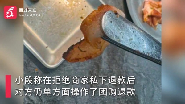 目前,小段已向相关部门投诉并要求赔偿。涉事烤肉店工作人员回应称暂无法明确答复,并指顾客"夸大其词"。