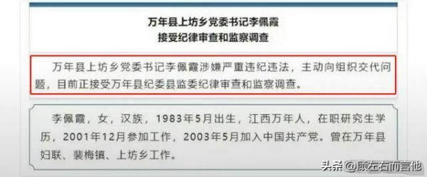 李佩霞是5月23日跟毛奇发生争执的,5月26日被万年县纪委以涉嫌严重违法违纪带走调查,这个在万年县的官网上可以查到。