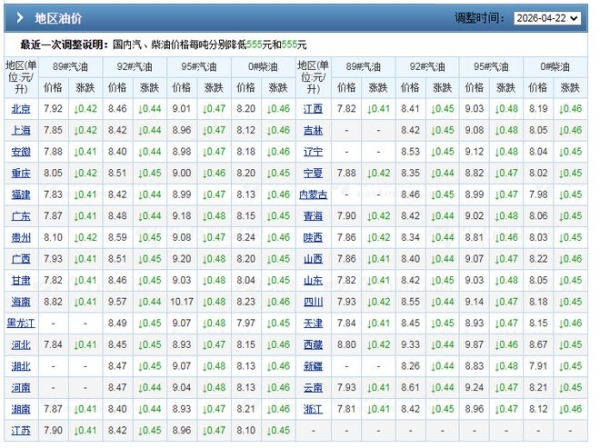 油价调整,国内汽柴油调整,每隔10个交易日生效一次,自2026年以来,国内油价呈现"冲高回落"的局面。上次汽柴油于4月21日24时下降530~555元/吨,油价结束了年内"6连涨"的走势,今年成品油第一次下降兑现。虽然,此次汽柴油降价幅度达到近3年以来的峰值,但是,相比此前6次连涨的涨幅仍显"不够看"。