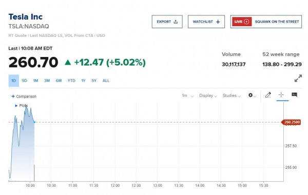 同时,因马斯克对特朗普公开表达支持,特斯拉当天也涨逾5%。