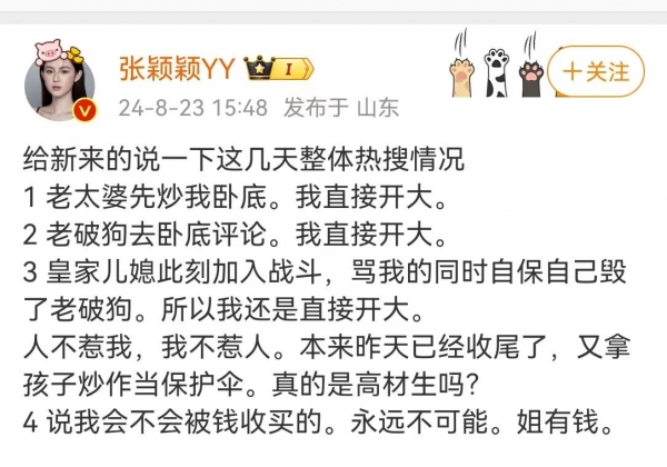 不过,他们这种靠直播卖货,或者开网红店的,就是需要流量,就是需要吸引网友的关注,之前撕大S是如此,现在撕张颖颖也是如此。