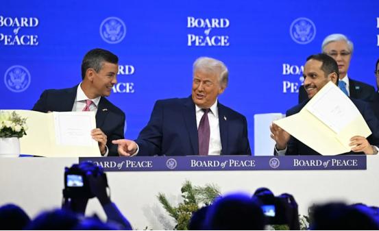 而就在不久前,美国总统特朗普在达沃斯签署成立了"和平委员会",这个机构明面上是为了解决加沙冲突而设立的,将对加沙停火进行监督并主导该地区的重建工作。但是特朗普已经不止一次地透露,解决加沙冲突只是第一步,"和平委员会"的影响力将辐射全球,要解决"更多热点地区问题"。